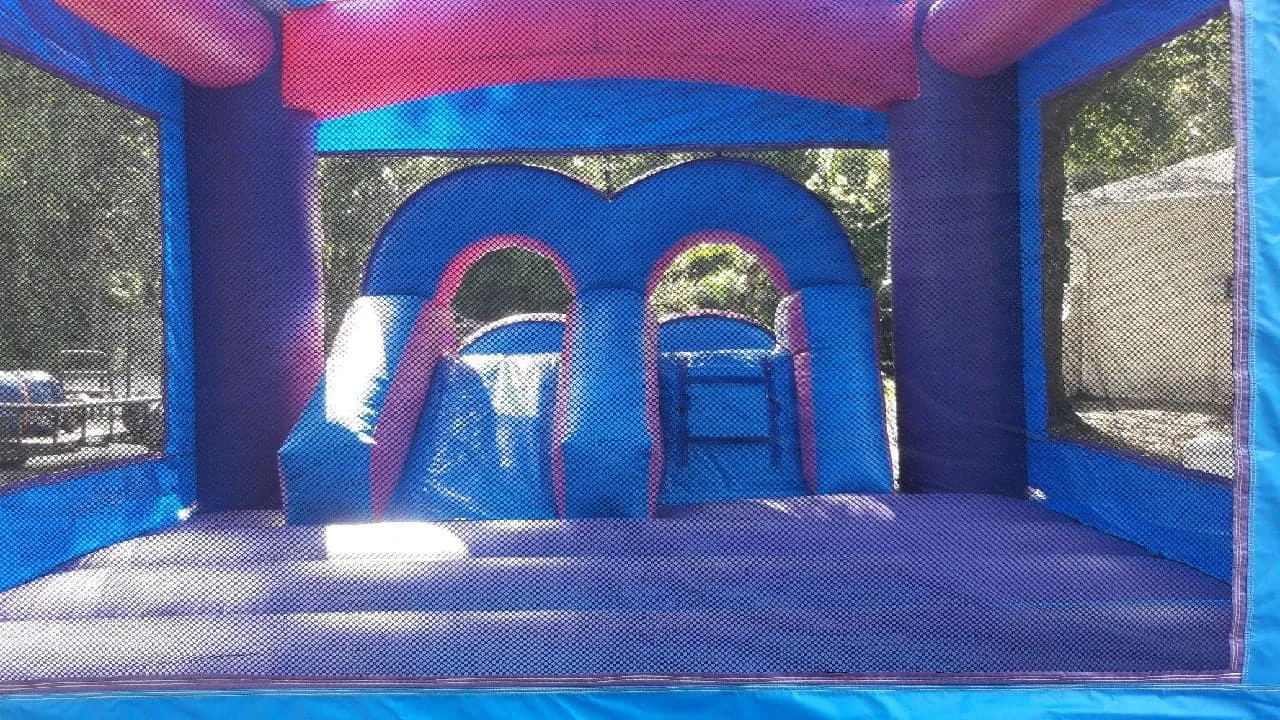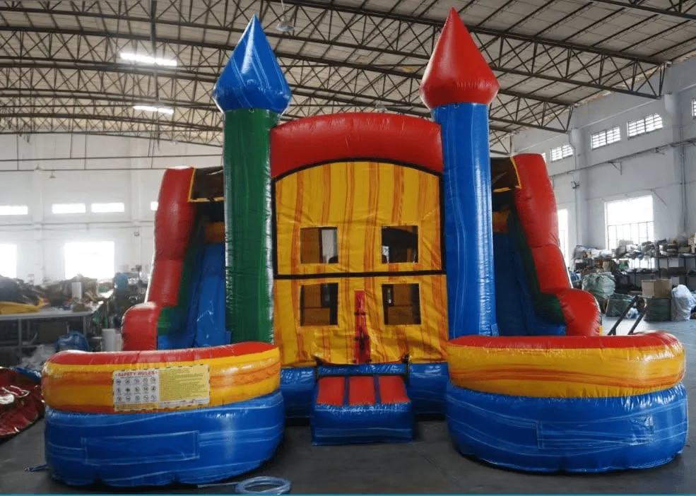 Enjoy the dual primary combo unit, two slides for double the fun! With a regular bounce house included and a landing pool for great fun.