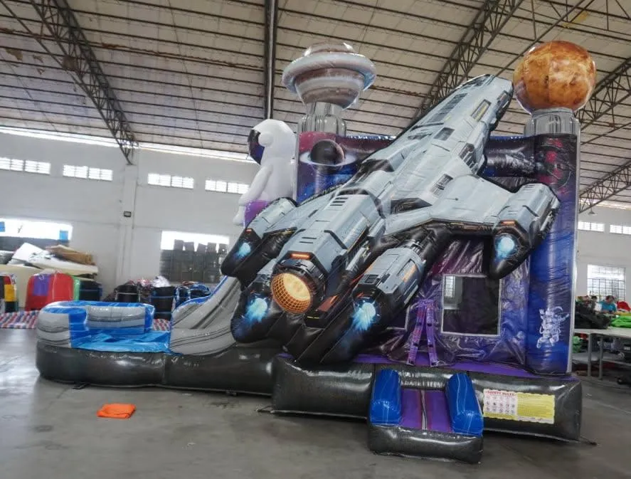 Launch your party into another dimension with the Cosmic Adventure Combo. This commercial-grade unit features a spacious jumping area along with a climbing wall that leads to an exciting slide, delivering nonstop action and fun. With its eye-catching space theme, astronaut design, and vibrant colors, it creates an out-of-this-world experience that keeps kids engaged and entertained all day long.
