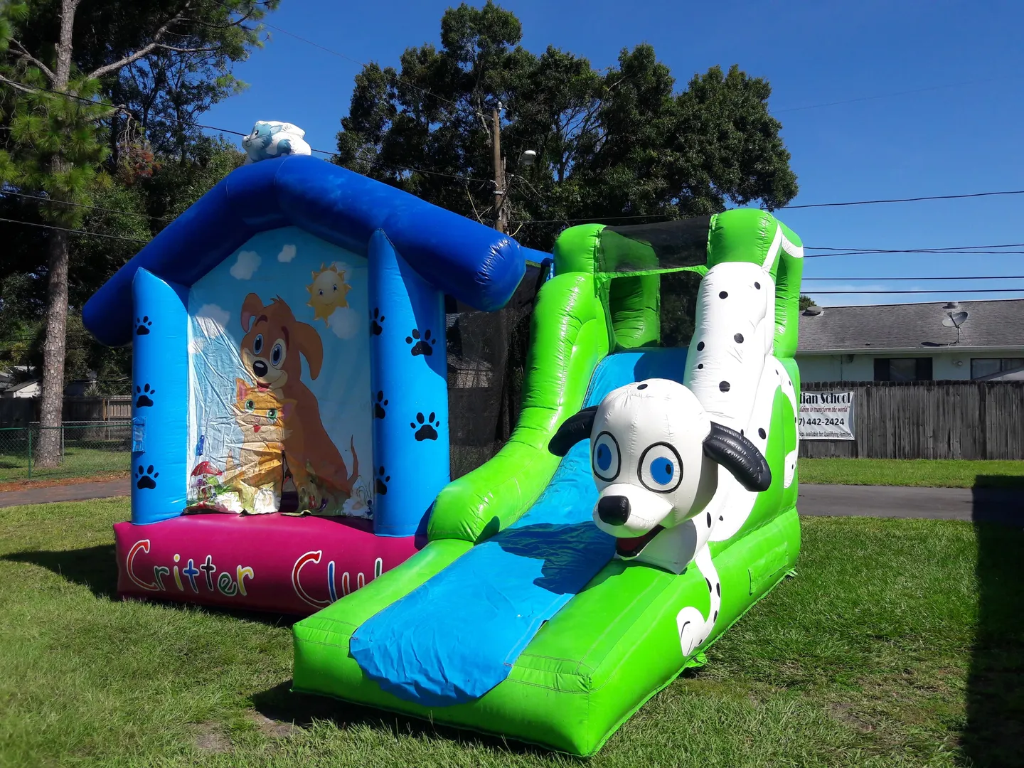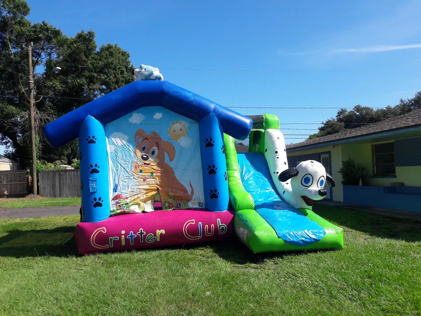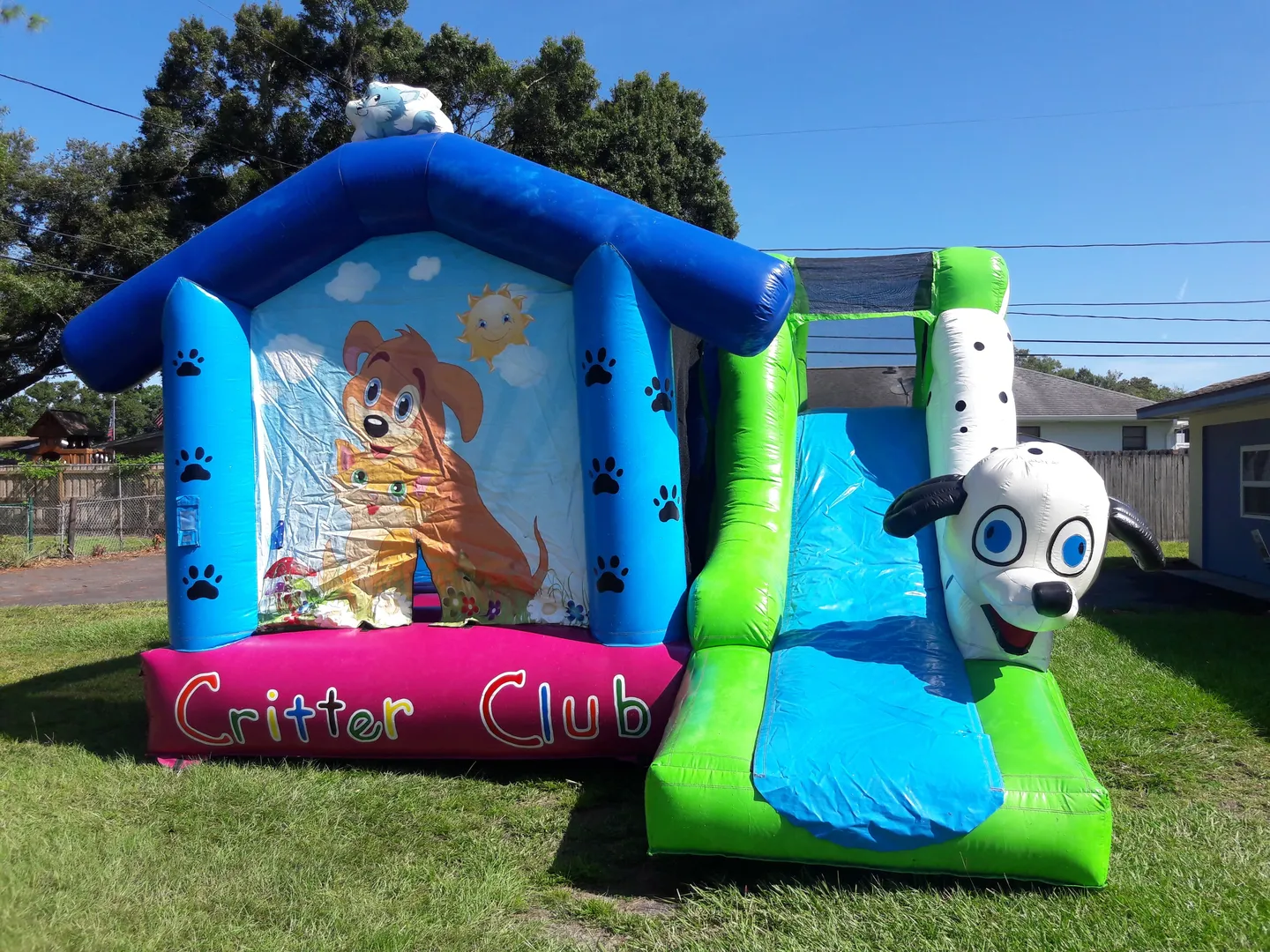 Do your guests love kittens or puppies? Do they like bouncers or sliding? No need to choose, because this fun combo unit featuring all kinds of cuddly critters is a bounce house and slide in one.