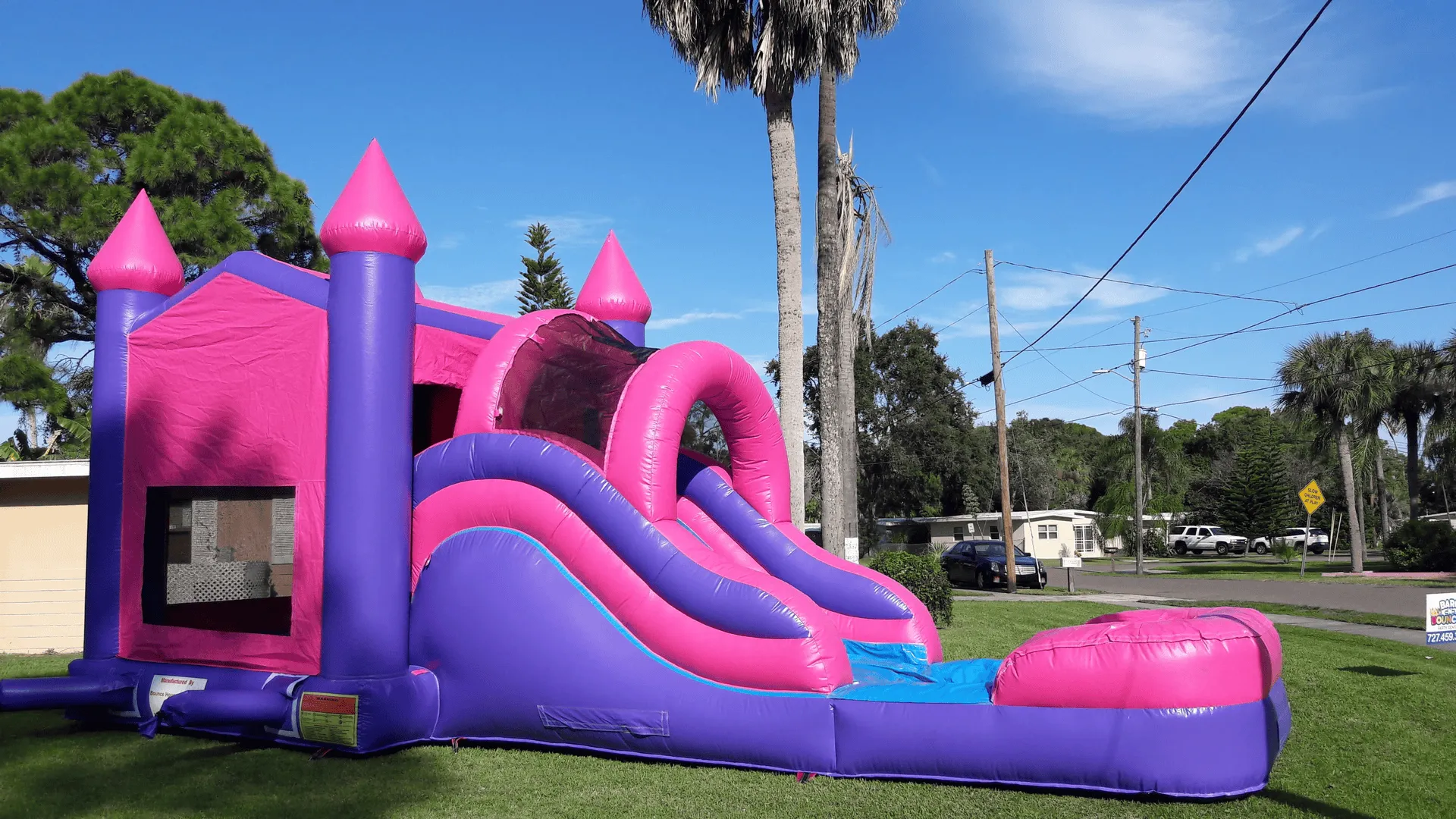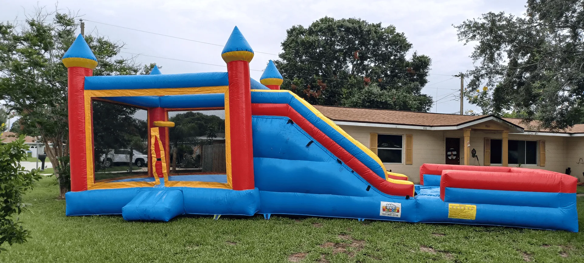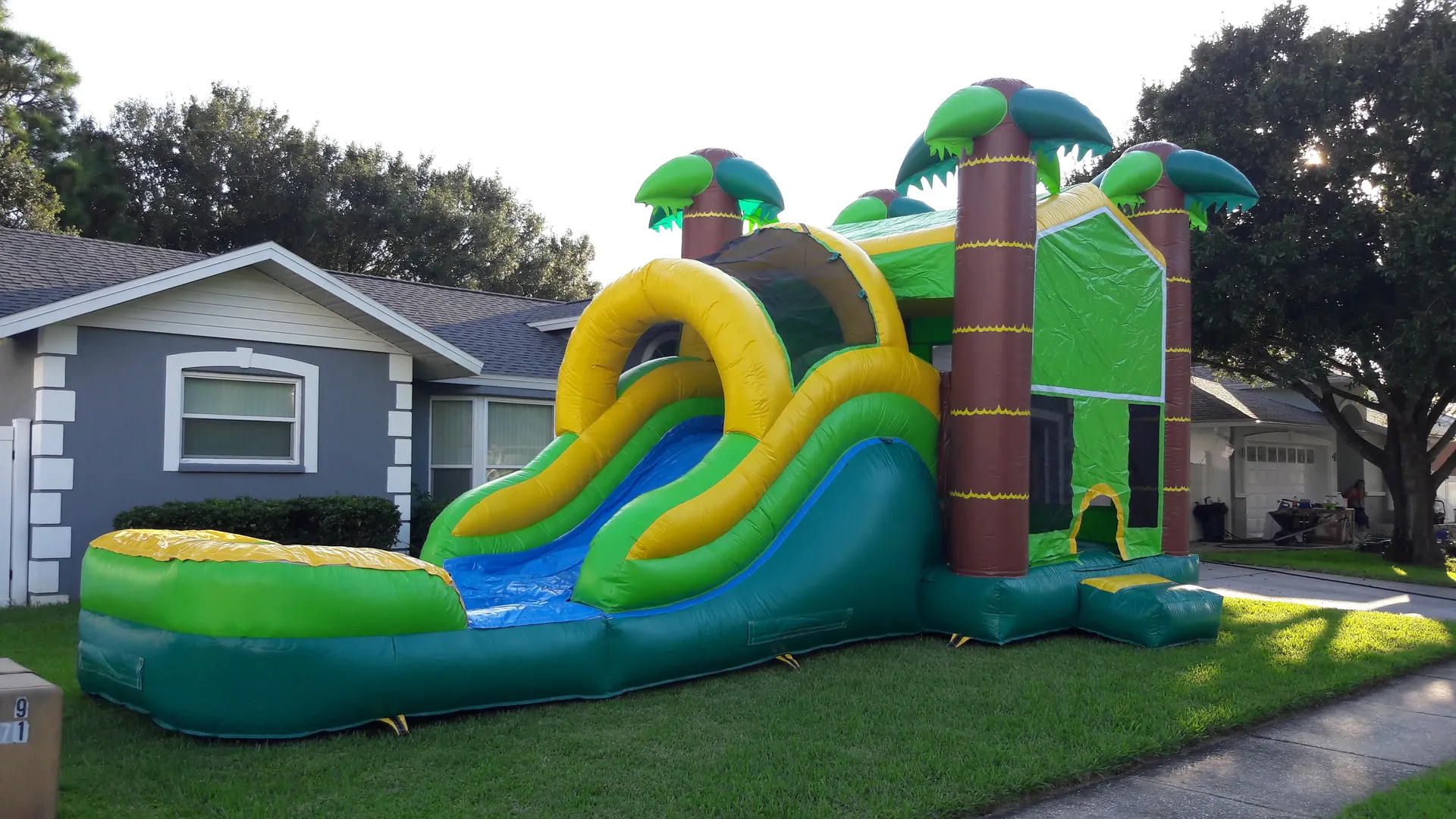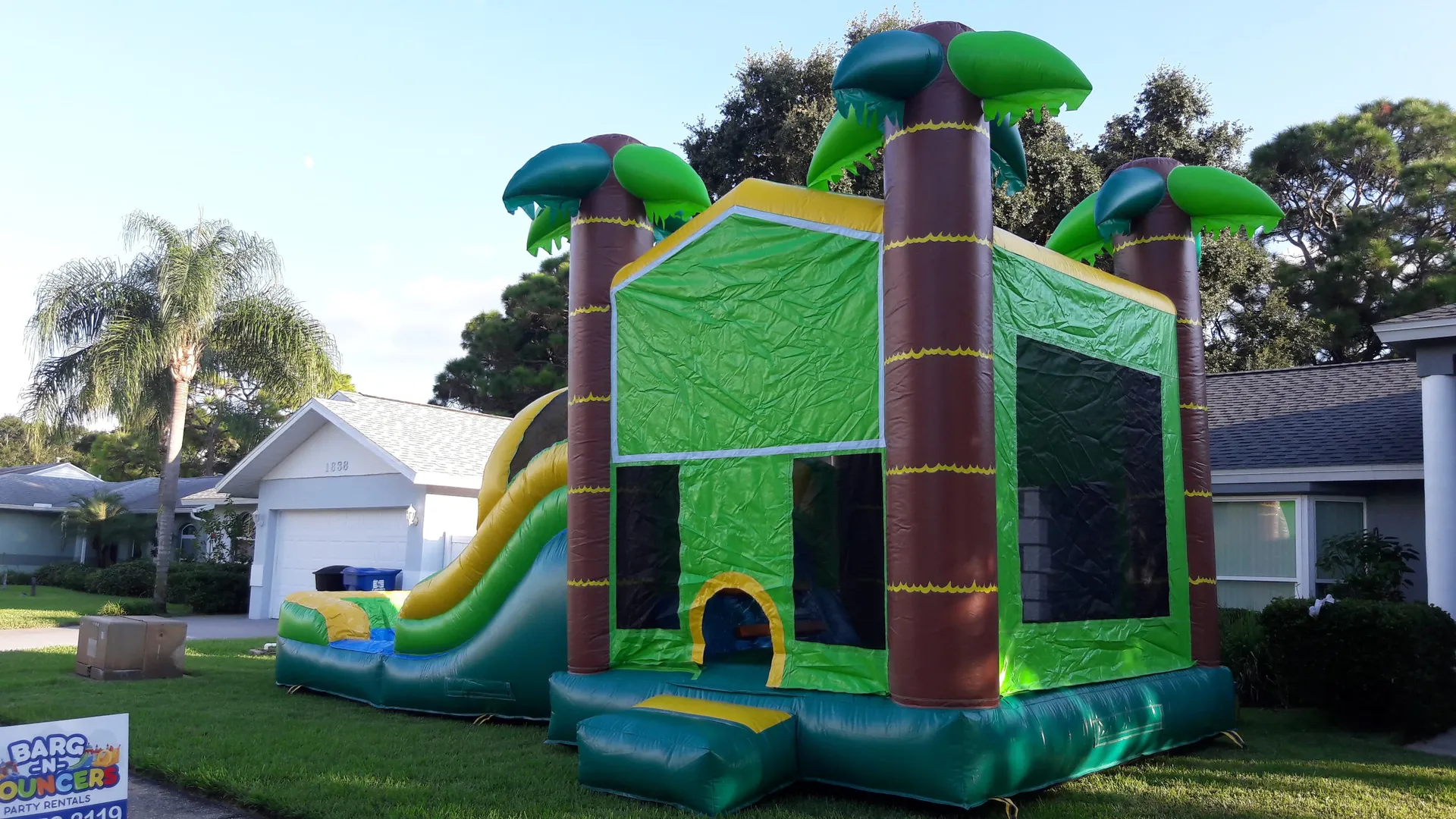 Live out your tropical dream with this wet/dry slide combo unit! It includes a pool and wide open mesh windows to watch all the fun on the inside. There’s more than meets the eye—it’s truly fantastic!
