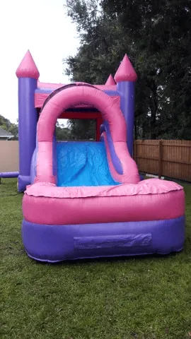 This princess-style castle has it all. Climb up from the outside, bounce on the inside, and catch a refreshing slide into a mini splash-down pool area (holds only a few gallons of water). A great addition to any party!