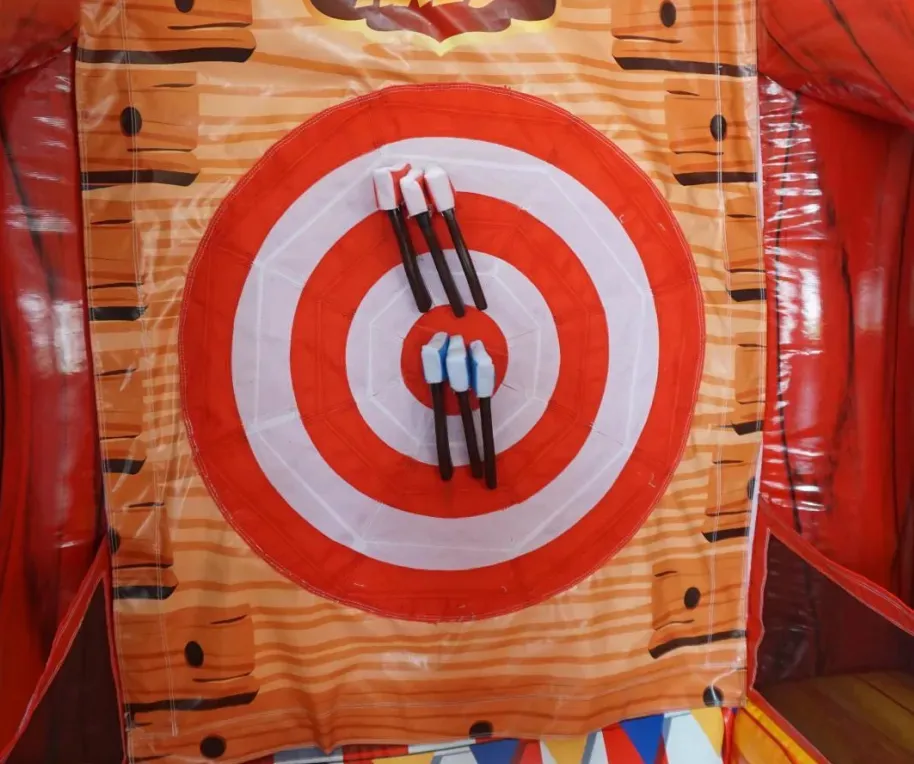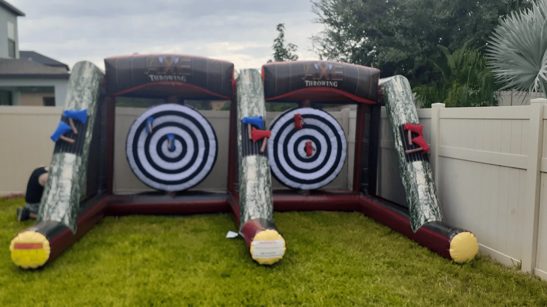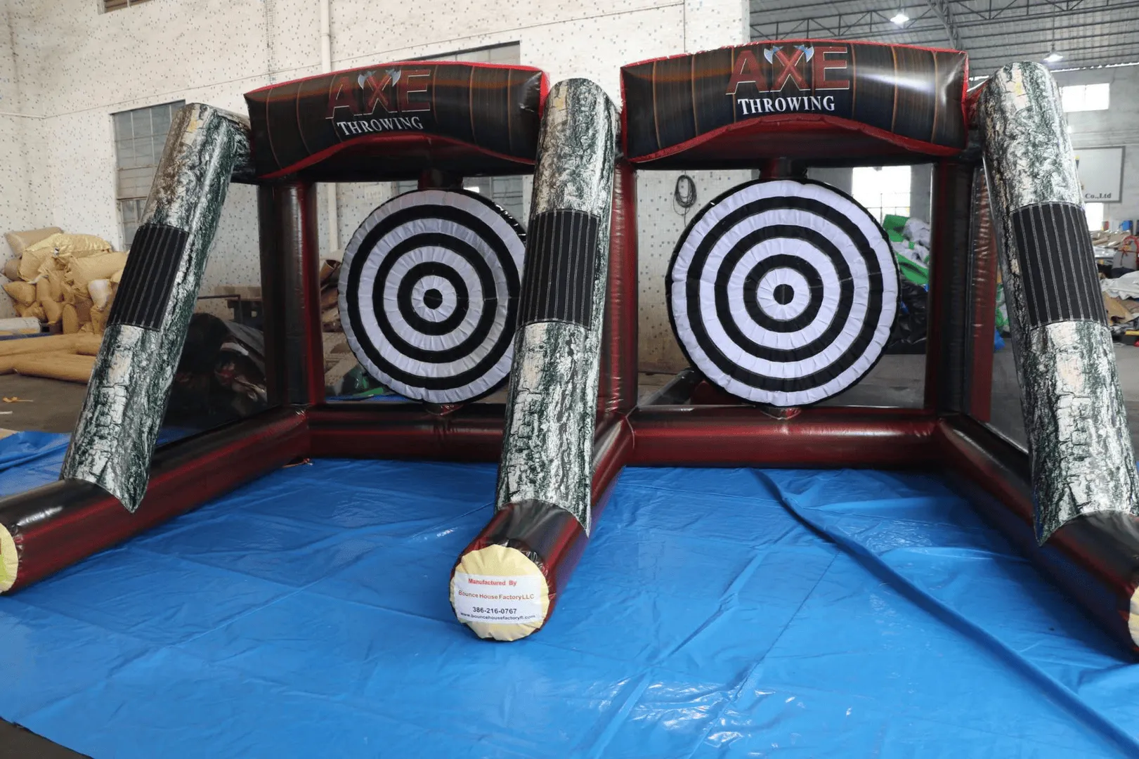 This famous carnival-themed attraction is a safe and fun inflatable game for players of all ages. Challenge a friend head-to-head with the triple feature unit or take turns in the single game. This unit comes equipped with specially designed Velcro axe game pieces.