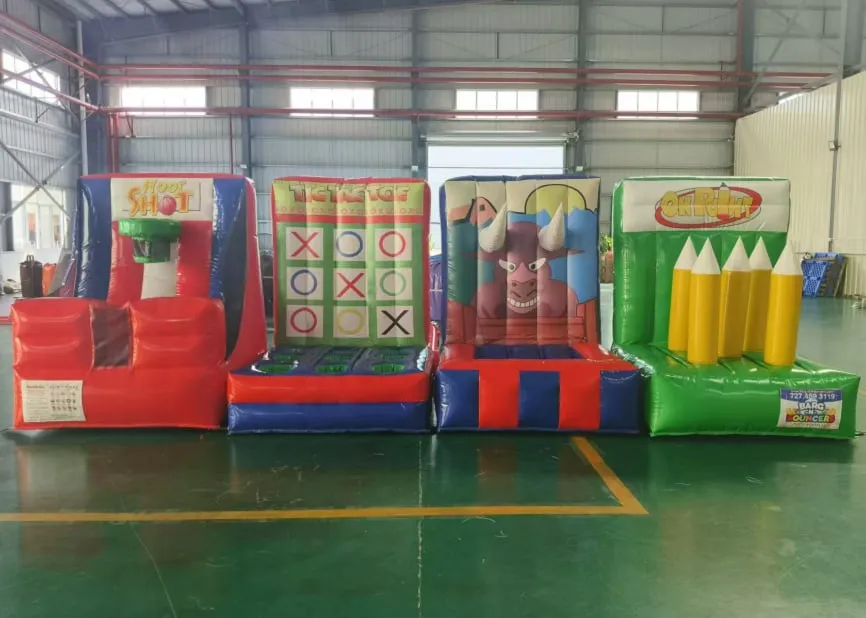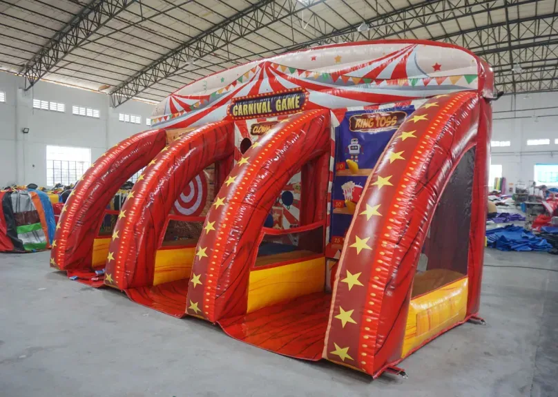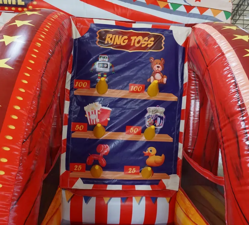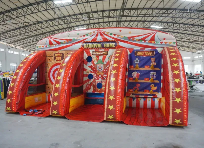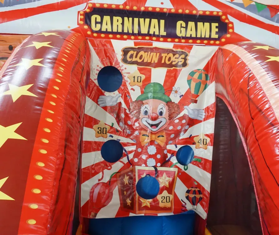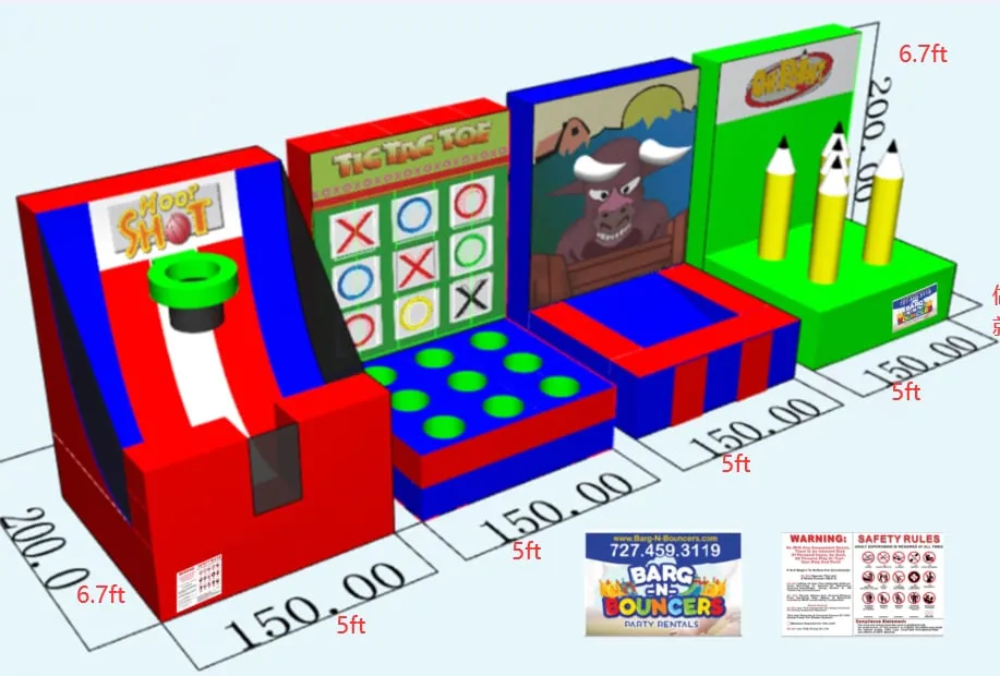 This famous carnival-themed attraction is a safe and fun inflatable game for players of all ages. Challenge a friend head-to-head with the triple feature unit or take turns in the single game. This unit comes equipped with specially designed Velcro axe game pieces.