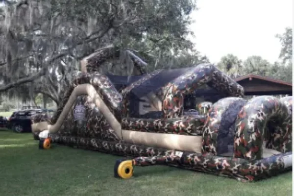 45-foot obstacle course with 7 elements, dry only. This unit is ready for any type of combat, whether 1-on-1 or group competition to the finish. Work your way through the 7 different elements of this obstacle!