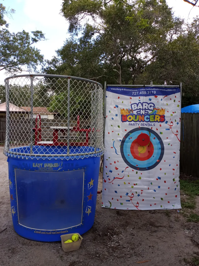 This large dunk tank is fun for all ages! Show your style when throwing or being dunked! Great addition to any party or festival. Features a 500-gallon tank for maximum wetness.
