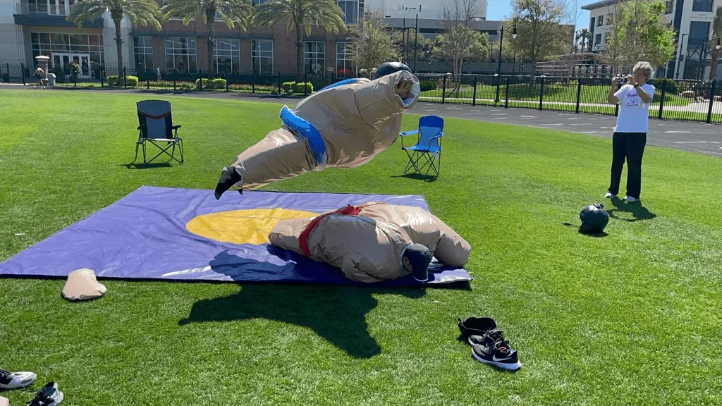 Have a sumo wrestling party. A hilarious challenge with each other in these sumo outfits to see who the real man or woman is. Great for most ages 8 and up. Comes with suits and a sumo mat. The mat is 10′ x 10′.