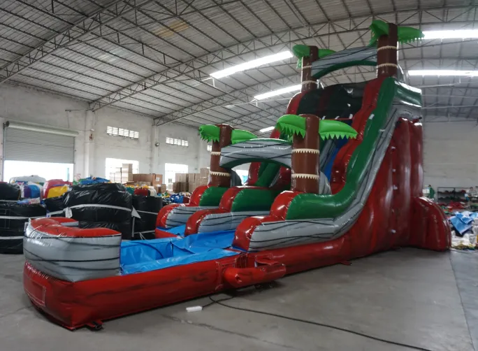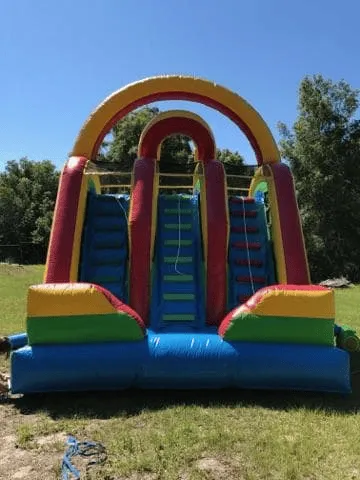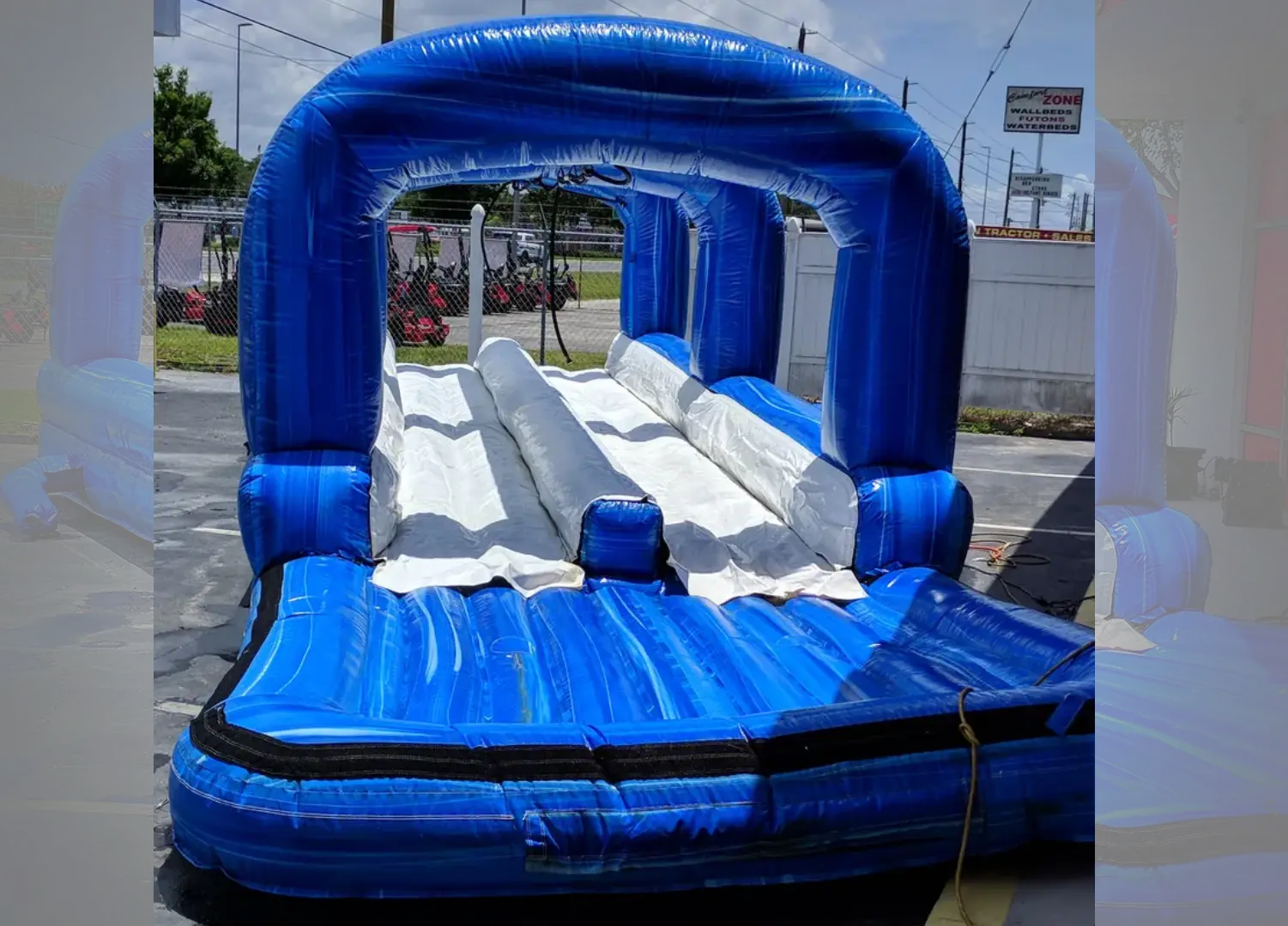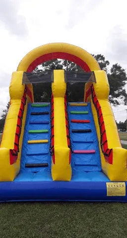 Great for double the fun! Has a large landing pool for great water fun. Line up and have a wild race with an 18ft drop.