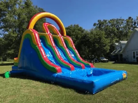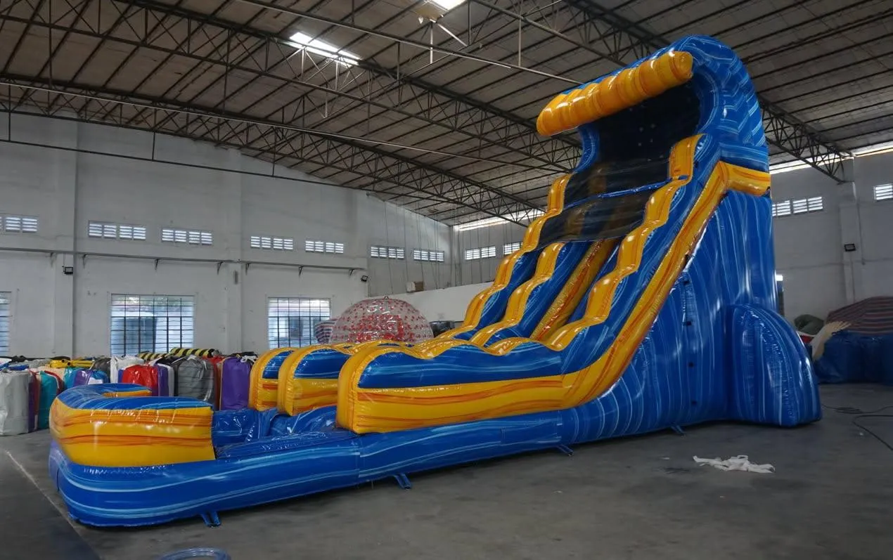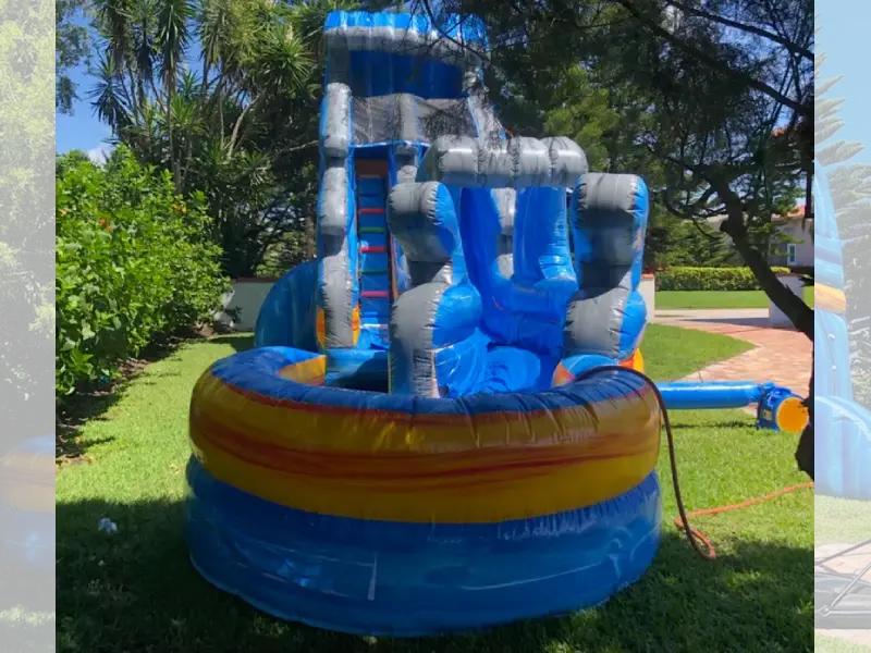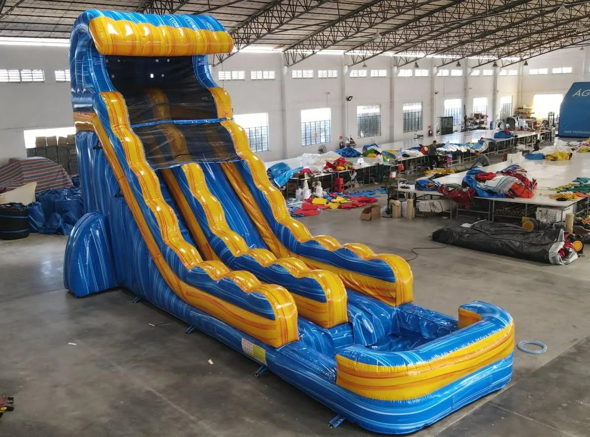 Party for all ages! Line up your crew and get ready for a thrilling ride. Climb up and launch down this towering water slide, racing into a refreshing splash pool at the bottom that keeps the fun going all day long. Designed for both excitement and cooling off, this slide delivers the perfect mix of adrenaline and nonstop summer vibes. With its bold design, vibrant colors, and impressive height, it instantly becomes the centerpiece of any party, event, or backyard celebration.
