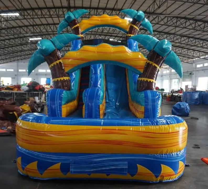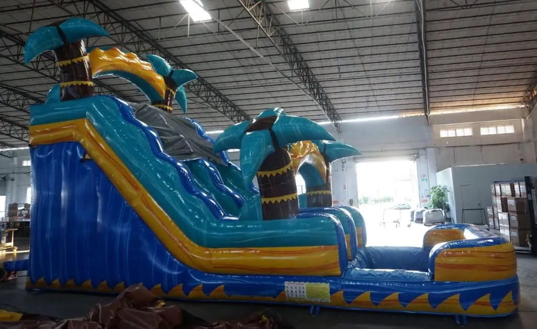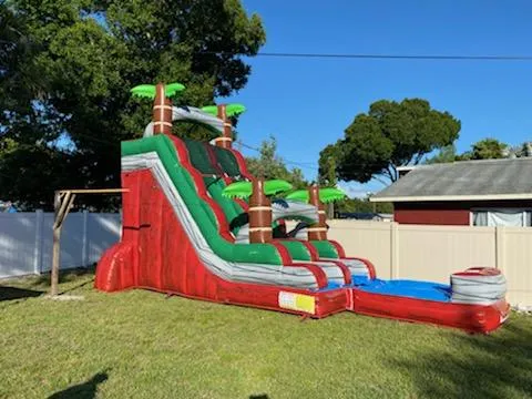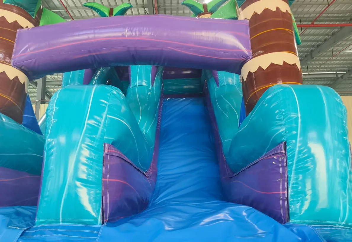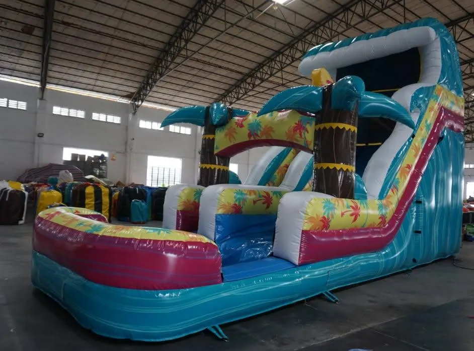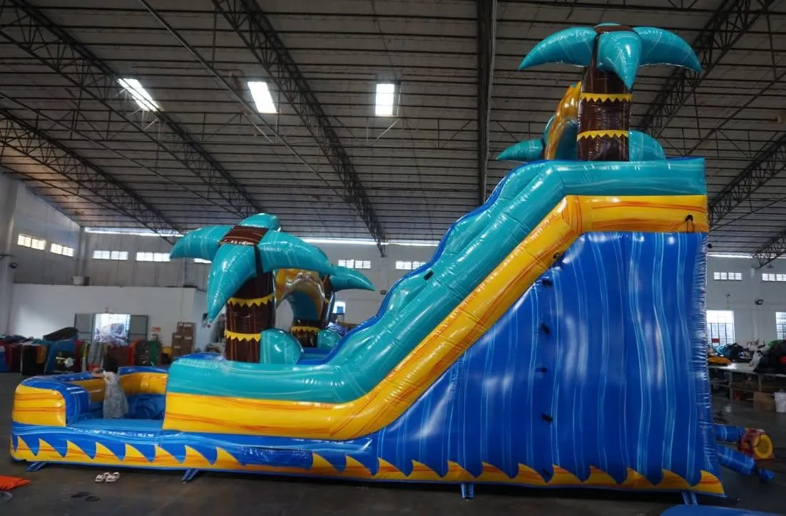 Bring tropical vibes straight to your event with the Island Breeze Water Slide. This commercial-grade unit features a tall climbing wall that leads to an exciting slide, finishing in a refreshing splash pool for nonstop cooling fun. With its vibrant colors and palm tree design, it creates a true island-style experience that keeps everyone entertained and coming back for more.