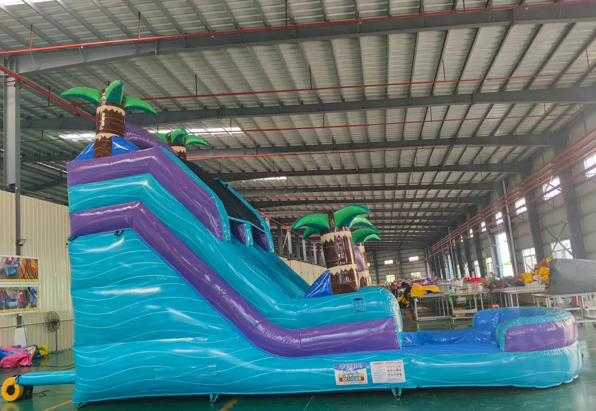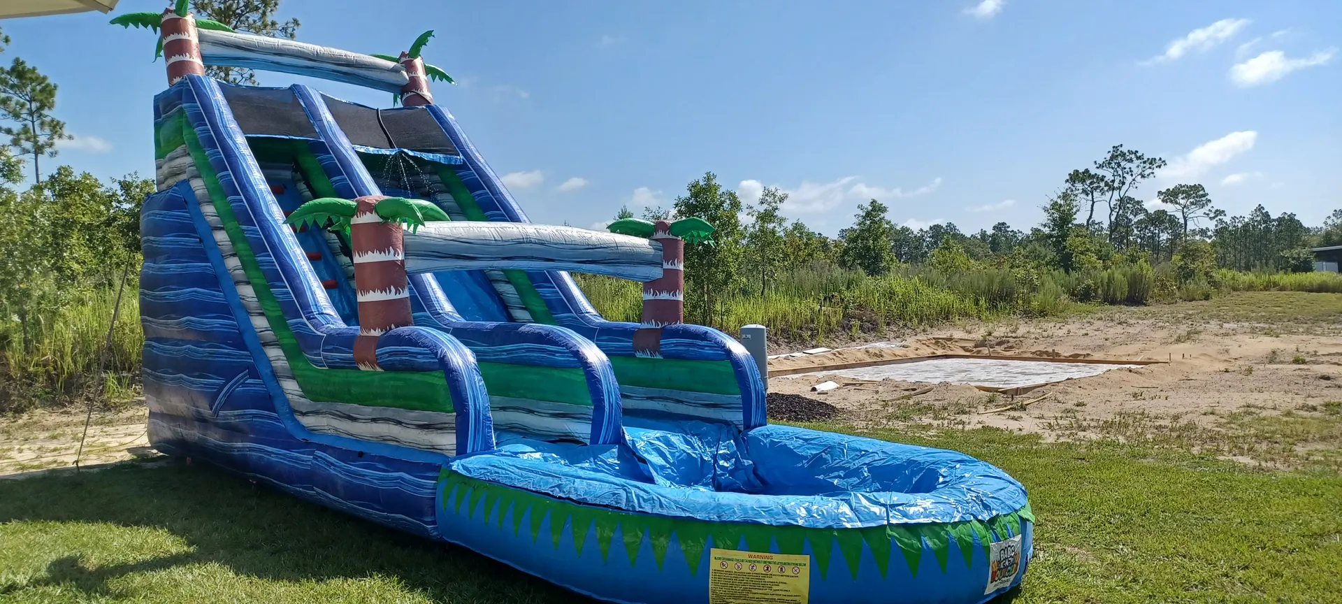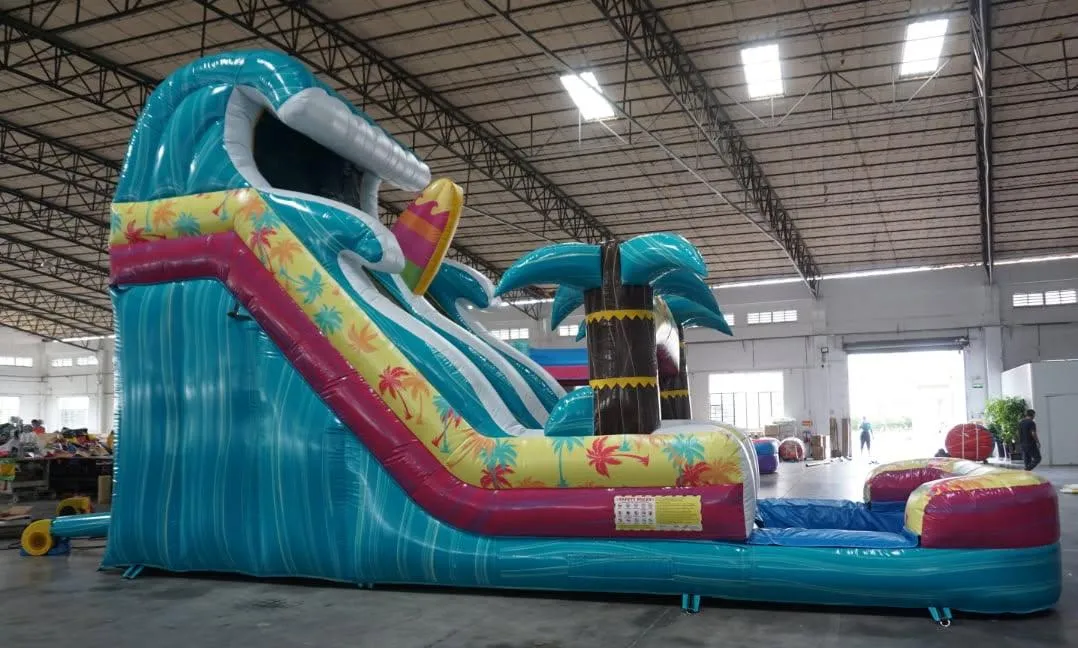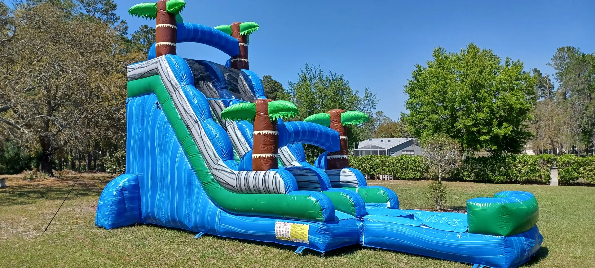 Bring tropical vibes straight to your event with the Island Breeze Water Slide. This commercial-grade unit features a tall climbing wall that leads to an exciting slide, finishing in a refreshing splash pool for nonstop cooling fun. With its vibrant colors and palm tree design, it creates a true island-style experience that keeps everyone entertained and coming back for more.