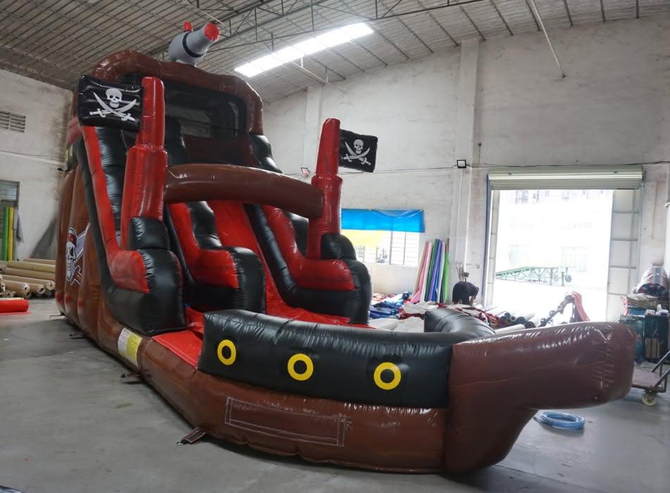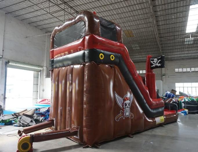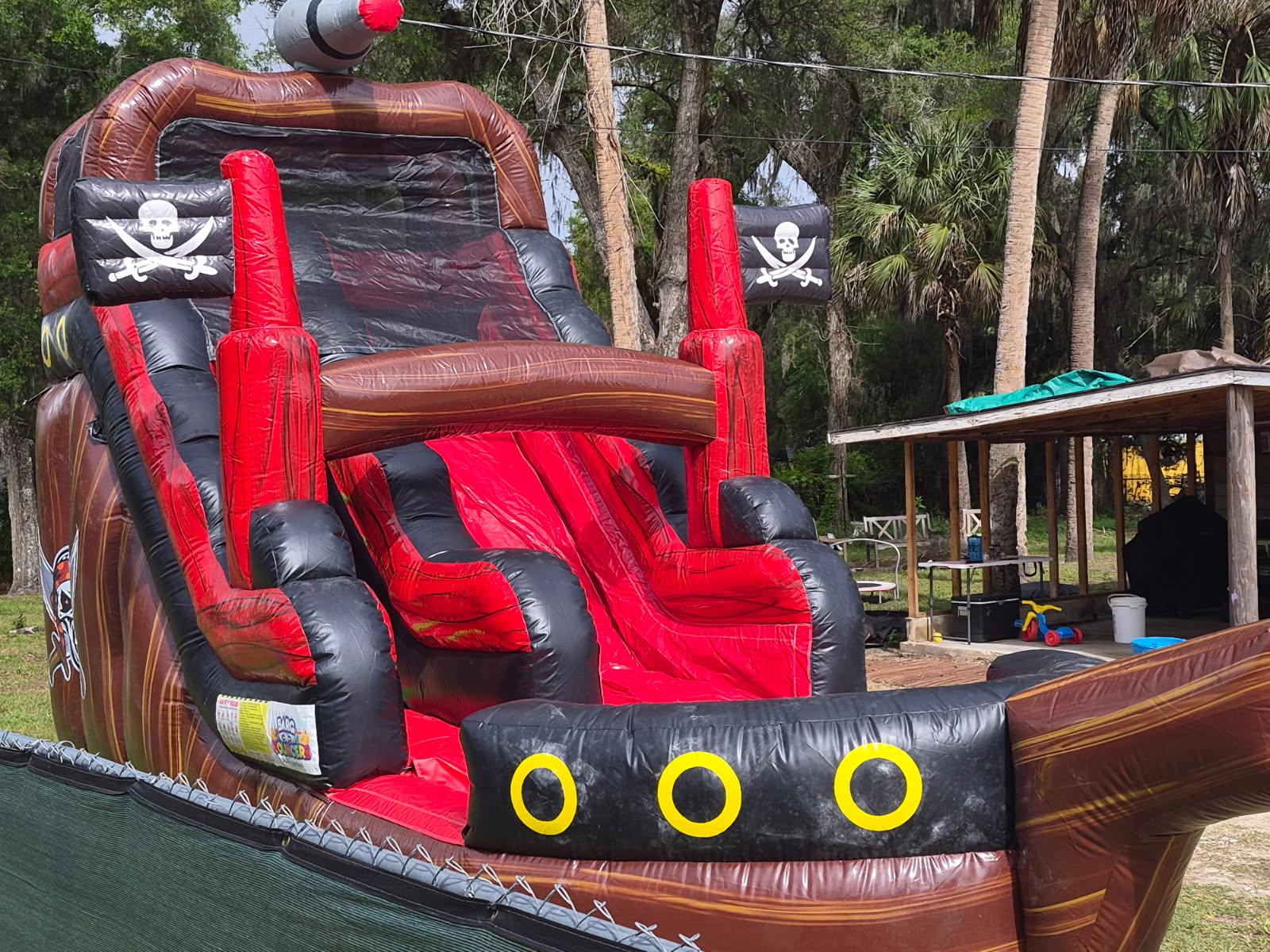 Party for any! Climb aboard the Pirate’s Revenge and get ready for an exciting splash into a refreshing pool of water waiting at the end. With its bold pirate ship design, skull-and-crossbones graphics, and eye-catching colors, this slide brings adventure and excitement to any event. As you can see, it’s a perfect option for any party where kids and adults want to cool off while enjoying some adrenaline-pumping fun. With a striking pirate theme and unique design, this slide is sure to be the highlight of your event.